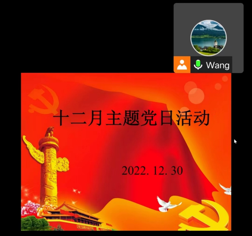 本网讯(通讯员 位秀丽)2022年12月30日下午,beat365官网第一党支部全体党员齐聚线上,通过腾讯会议开展了12月份主题党日活动。本次活动的主题是“深入学习宣传贯彻党的二十大精神,统筹疫情防控和经济社会发展”。活动由支部书记汪静杰主持。
