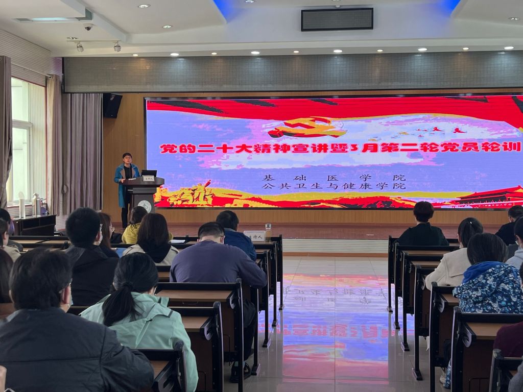 本网讯(通讯员 黄晶晶 李洋洋)根据学校党的二十大精神轮训安排,3月30日下午,校党委常委、副校长严世荣为师生讲授党的二十大精神宣讲暨3月第二轮党员轮训专题党课,对党的二十大新修订的党章进行重点学习。beat365官网、公共卫生与健康学院全体无课教师及学生党员参加,活动由beat365官网分党委书记张秋芳主持。
