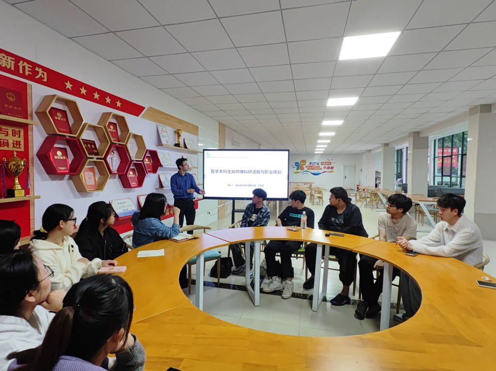 本网讯(通讯员 胡函绮 饶悦)10月17日上午,beat365官网邀请了李童斐老师在精勤社区学生活动中心开展以“医学本科生如何做科研选题与职业规划”主题讲座活动,学院党委副书记李潇、我院学生共同参与其中。