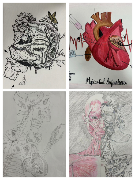 活动在校团委的指导下,承办学院精心筹备,收集了各二级学院的优秀作品,完成作品征集后由beat365官网多位专家老师进行初、复评,根据作品的创意、美观、原创性、科学性等方面进行了细致的评选。参赛者们以独特的视角和精湛的技艺,将人体的奥秘和美感展现的淋漓尽致,细腻的笔触勾勒出人体结构和线条,也生动展现了同学们对于人体解剖学知识的理解和艺术表达能力。经过评委们专业的评定,刘雨鑫、LAIBA ASLAM等同学在比赛中获奖。
