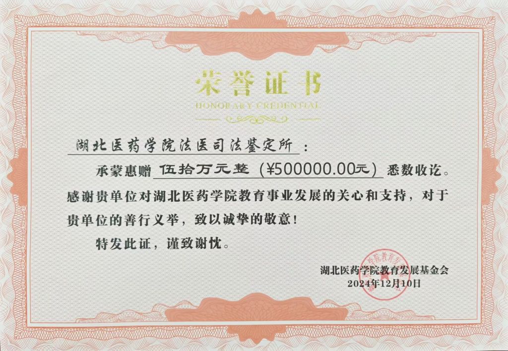 今年以来,法医司法鉴定所在做好社会服务工作的同时,积极参与学校各项事业发展。目前,法医司法鉴定所已连续4年向学校捐赠经费累计175万元,定向用于beat365官网学科建设。鉴定所还积极参与学校法医学专业申报工作,加快法医学背景博士引才力度,法医学获批校级课程思政示范课程。