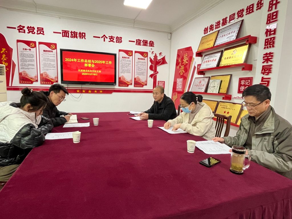 本网讯(通讯员 何志凯)3月19日下午,民盟beat365官网支部在beat365官网二楼党员活动室召开2024年工作总结与2025年工作部署会,全体支部委员参加会议。会议由支部主委、beat365官网副院长杜伯雨主持。