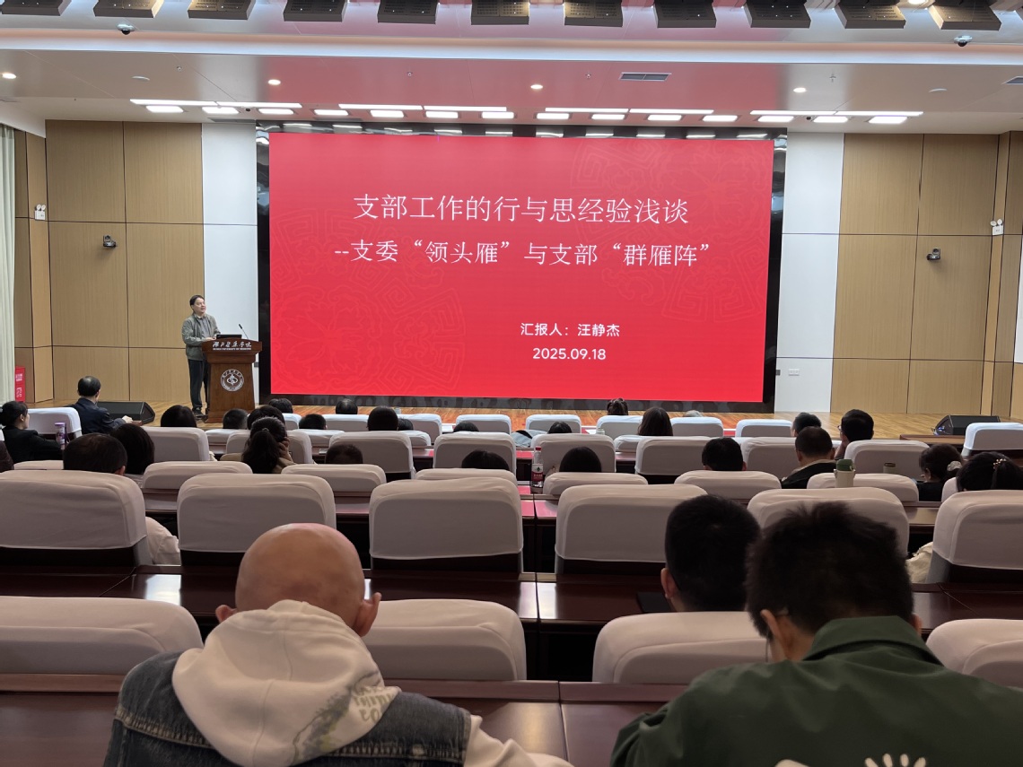 先进事迹宣讲会上,院党委委员、第一党支部书记、全国高校“双带头人”教师党支部“强国行”专项行动团队负责人汪静杰以《支委“领头雁”与支部“群雁阵”—教师党支部工作的思与行经验浅谈》为题就党支部建设进行经验分享,生物化学教研室主任、湖北省第七届青教赛二等奖获得者李丹丹 以《教学竞赛经验交流—以青教赛为背景》为题就教学竞赛进行经验分享。他们躬耕教育一线的经验分享,激励全院广大教师守初心、担使命,为教育事业作出新的更大贡献。