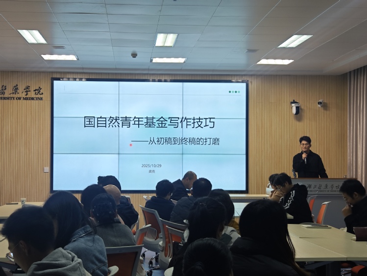 会议伊始,刚获批2025年度国家自然科学青年基金的龚克博士根据自身经验以申报书从初稿到终稿的撰写打磨为主线,从选题、摘要、立项依据的逻辑链构建,再到机制图的科学绘制与视觉优化,结合自身思路历程拆解关键环节,提醒大家规避逻辑断层与模糊表述等常见误区,现场交流氛围热烈。