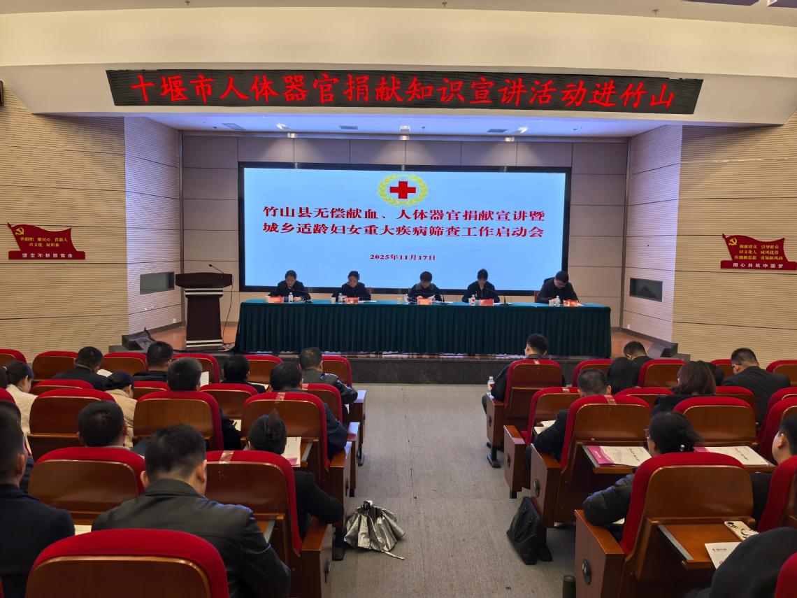 本网讯(通讯员 张伟)11月17日下午,“巨鲸落・万物生”遗体及器官捐献志愿服务队贾贤梁老师受邀参与竹山县无偿献血、人体器官捐献宣讲暨城乡适龄妇女重大疾病筛查工作启动会,在秦巴艺术中心四楼会议室开展专题宣讲。活动由竹山县政府统筹部署,县卫健局、县红十字会联合承办,竹山县县长刘丽、县直有关单位负责人、各乡镇分管负责人、卫生健康系统代表等出席了活动。