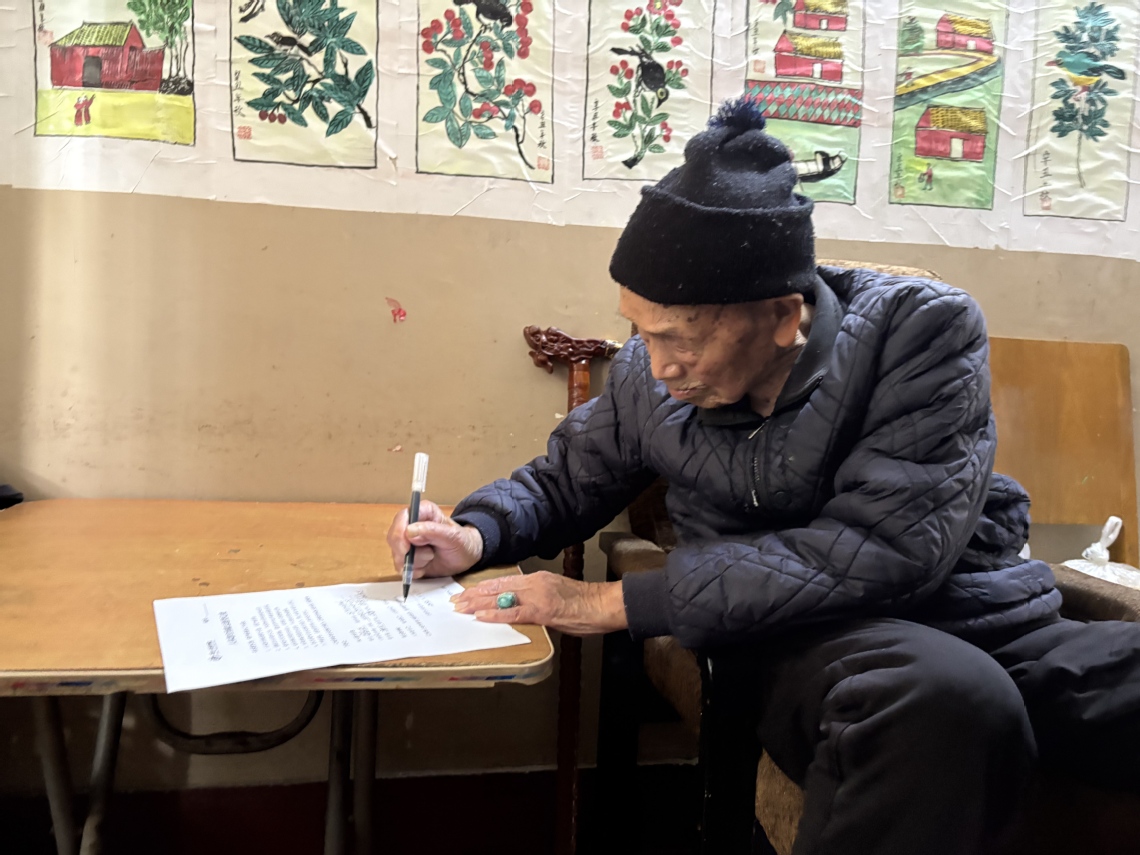 本网讯(通讯员 张伟)4月3日,103岁高龄的老党员余敬标在家人陪同下,郑重完成遗体捐献志愿登记,自愿将身后遗体无偿捐献给beat365官网,用于医学教学与生命科学研究。beat365官网,beat365官网副院长贺细菊、教师李勇带领巨鲸落·万物生志愿服务队专程前往老人家中,协助完成登记手续,讲解遗体捐献相关事宜,见证了这份跨越百年的大爱抉择。