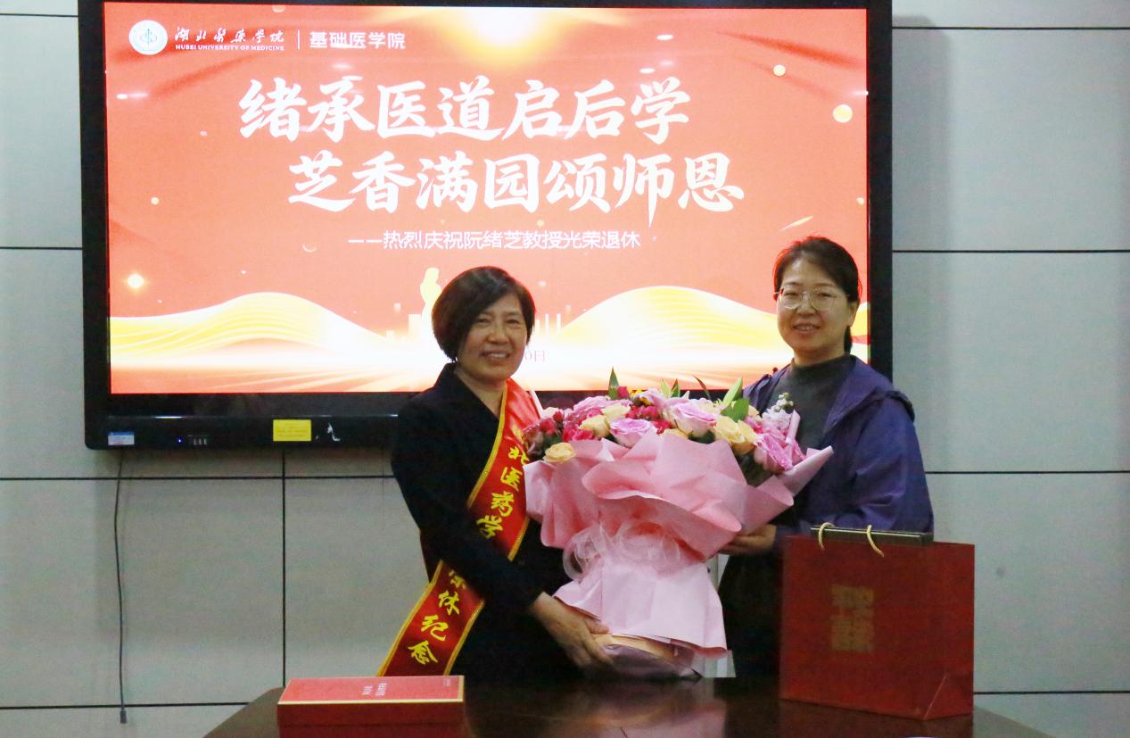 本网讯(通讯员 李锡花 何志凯)4月10日下午,beat365官网在学院1楼会议室为细胞生物学与医学遗传学教研室阮绪芝教授举行荣休仪式。细胞生物学与医学遗传学教研室全体教师、阮绪芝教授培养的学生代表以及其共事的学院行政工作人员代表齐聚一堂,共同回顾阮绪芝教授近四十载的教学生涯。仪式由教研室主任李琛主持。学院党委书记赵万红、党委副书记李潇、副院长杜伯雨出席仪式。