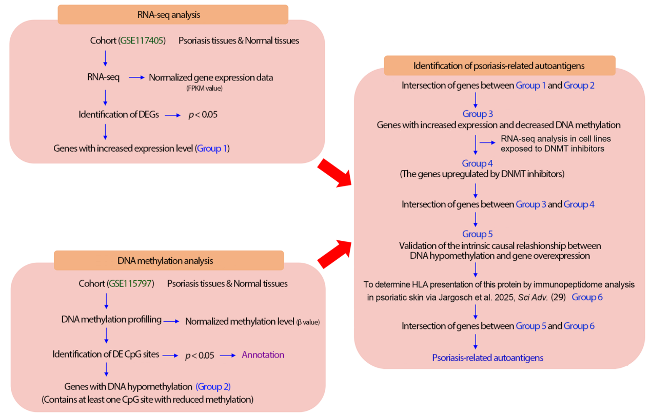 为验证上述假说,钦闪闪教授团队另辟蹊径,创新性地整合了DNA甲基化组、转录组和免疫肽组三类多维数据,建立了一套高通量筛选策略,专门用于捕捉因DNA低甲基化而异常激活的银屑病相关自身抗原。通过该策略,研究团队最终精准锁定转钴胺素1(Transcobalamin 1, TCN1)为银屑病关键致病自身抗原。